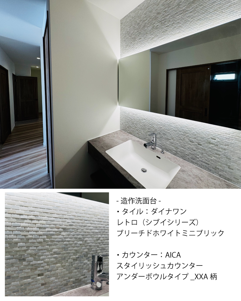 ▶お施主様こだわりの造作洗面化粧台。オリジナルオーダーもご相談ください。