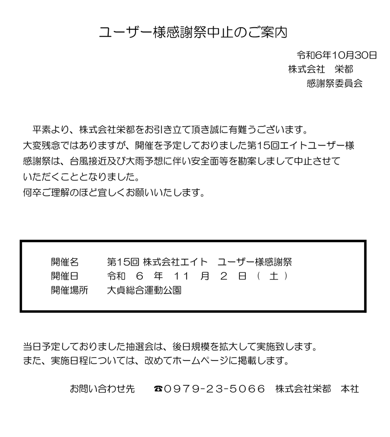 中津会場の感謝祭へご参加予定のユーザー様 各位