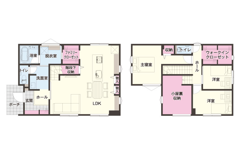 リビング⇒キッチン⇒ウォークインクローゼット⇒脱衣室⇒お風呂⇒トイレ⇒洗面⇒玄関とぐるっと一周できます。お掃除が楽で、洗濯も干してそのまま乾いたらウォークインに入れることができるので家事が効率良く終わりとても有難いです。