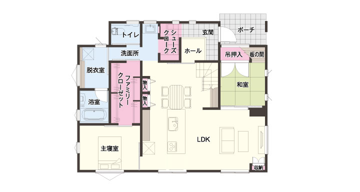 主寝室を1階に配置した住まい計画です。