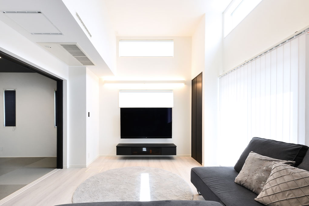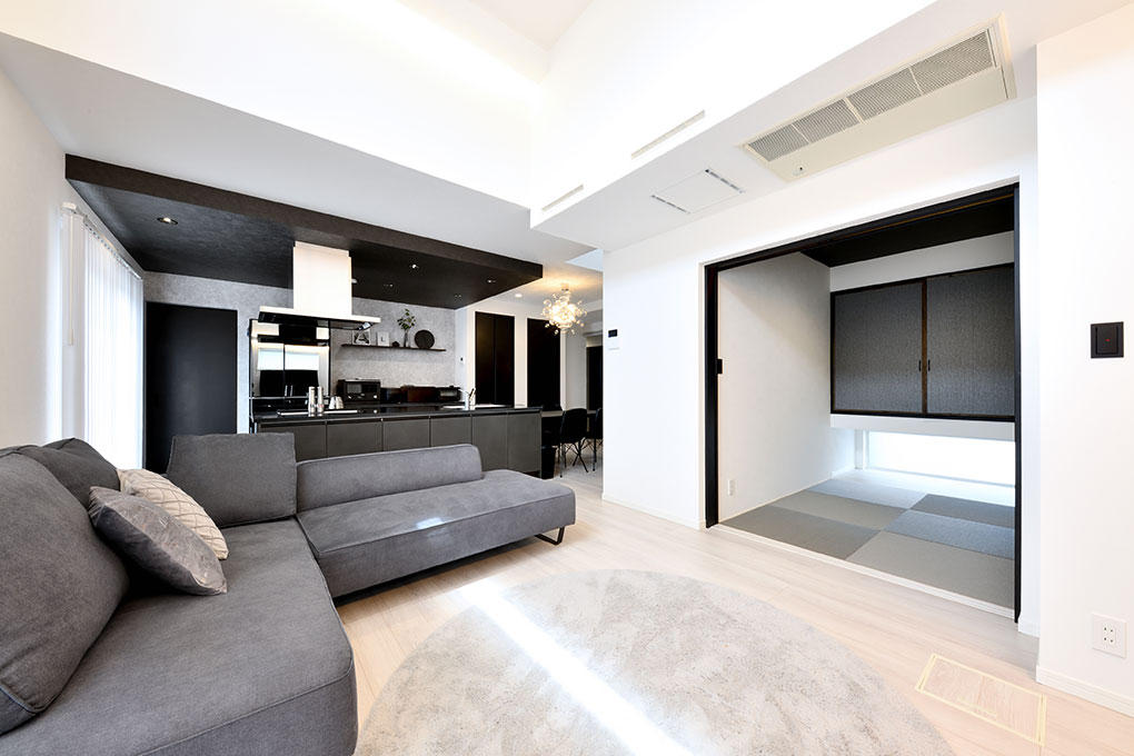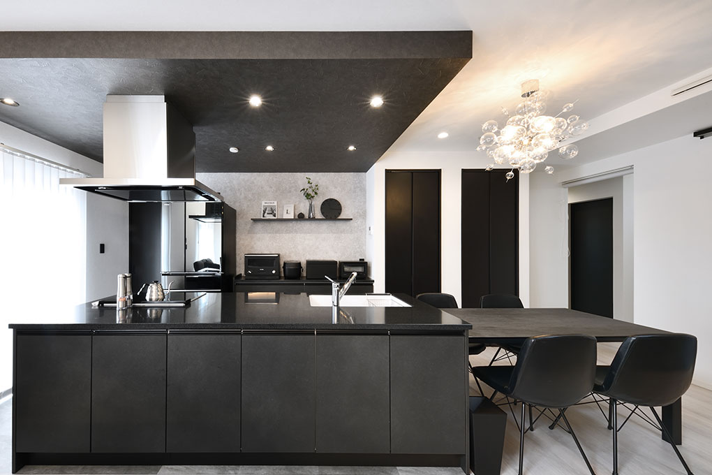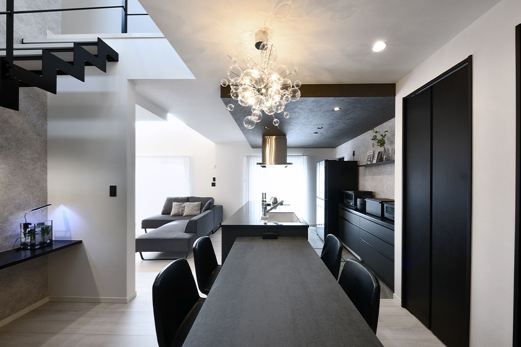統一感、ブラックホワイトの色味、家事動線や老後の生活です。