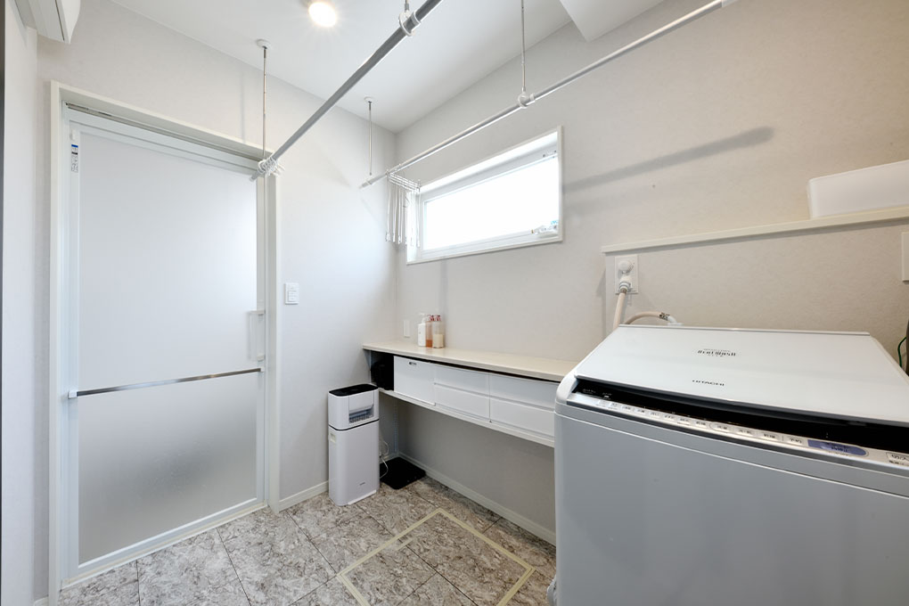 家事動線も脱衣所にランドリールームを作り近くにウォークインクローゼット、寝室からも廊下からもいけるクローゼットはすごく助かってます。玄関から近い洗面も子供がすぐ手洗いできるので良いです。トイレも広く作ったこと、寝室が1階なことは老後も無理なく過ごせると思います。