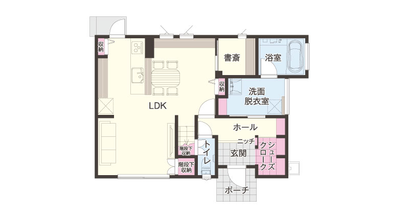 K様邸は各所に収納を完備。片付けしやすく、必要なものが使いやすい収納計画。