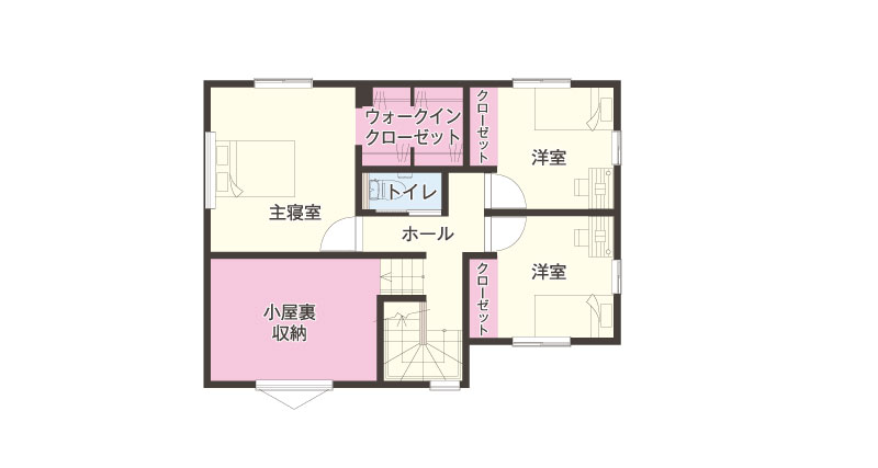 オーソドックスな造りながら無駄が少ない二階の間取り。